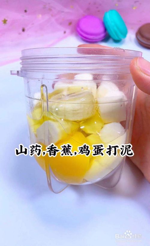 首先将山药和香蕉处理好倒入料理机中,之后打入一颗鸡蛋打成泥。