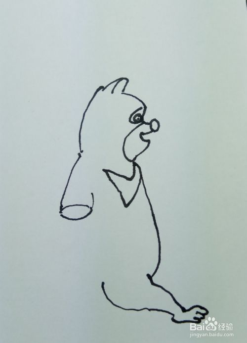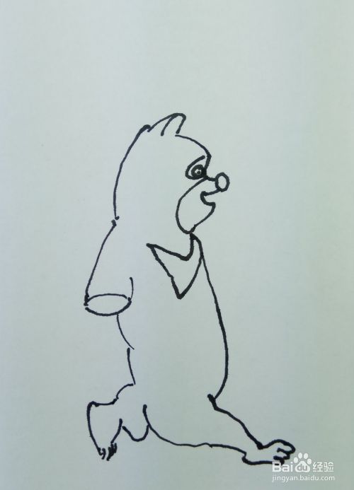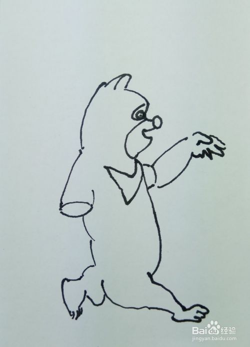画出熊的另外一个胳膊和爪子,将熊的腿部画完整,他正在急匆匆的走路。