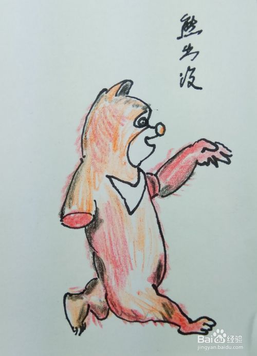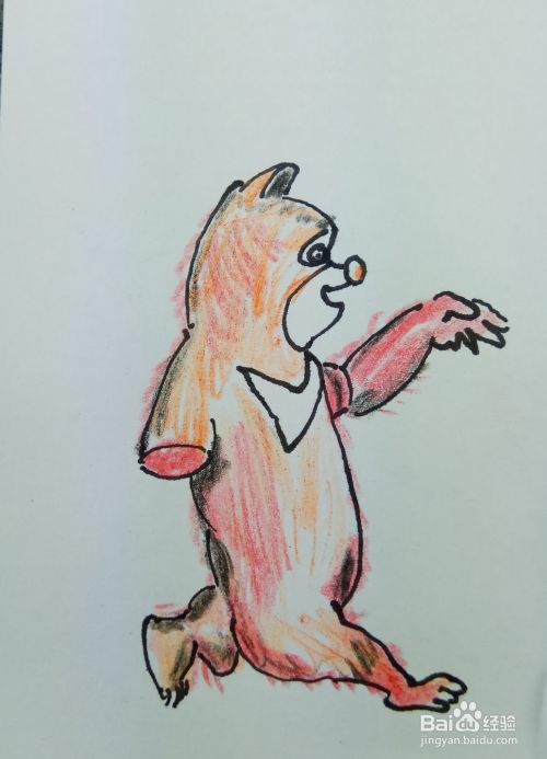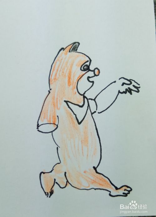 用棕色的水彩笔涂出熊的身体色彩和皮毛色彩。