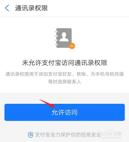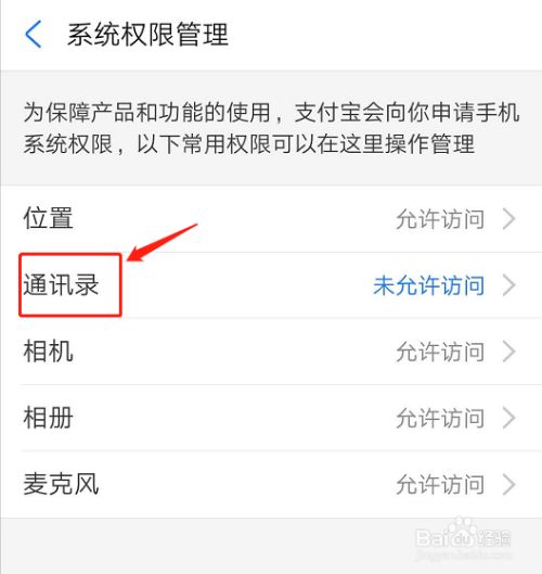 第五步,进入系统权限管理,比如我们可以授权支付宝访问通讯录,点击允许访问按钮即可。也可以关闭其他权限的授权。