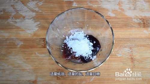 碗中加入适量辣酱,适量蚝油、适量的盐、适量白糖,适量清水搅拌均匀备用。