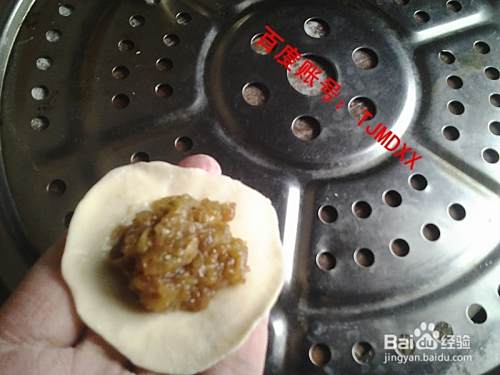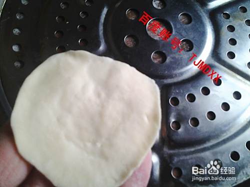 拿一个擀成圆形的饺子皮,如下面图片中所示。
