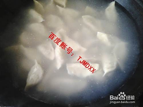 上锅加清水开火,水开后下入包好的饺子,连开三次,点三次凉水,开锅就熟了。