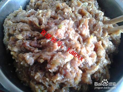 把新鲜的绿萝卜洗净,用刨子刨成细丝,放到案板上剁小,装入一个能搅拌开的盆里,撒上盐腌一会。去除萝卜出的水,把准备好的葱姜末、猪肉末、食盐、鸡精、酱油、十三香等作料一起搅拌均匀备用。