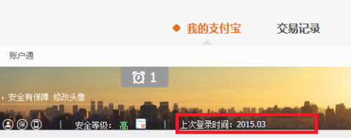 登录后,支付宝首页头像栏即可见上次登录时间;