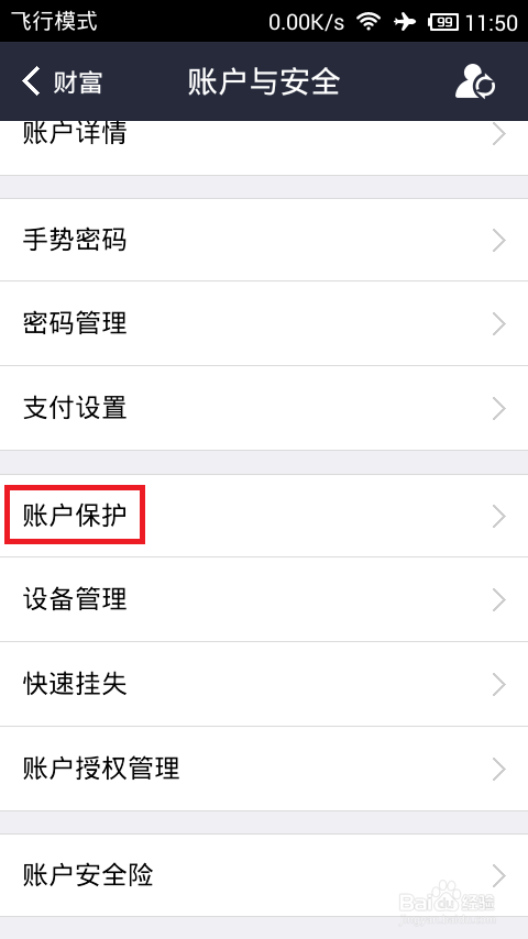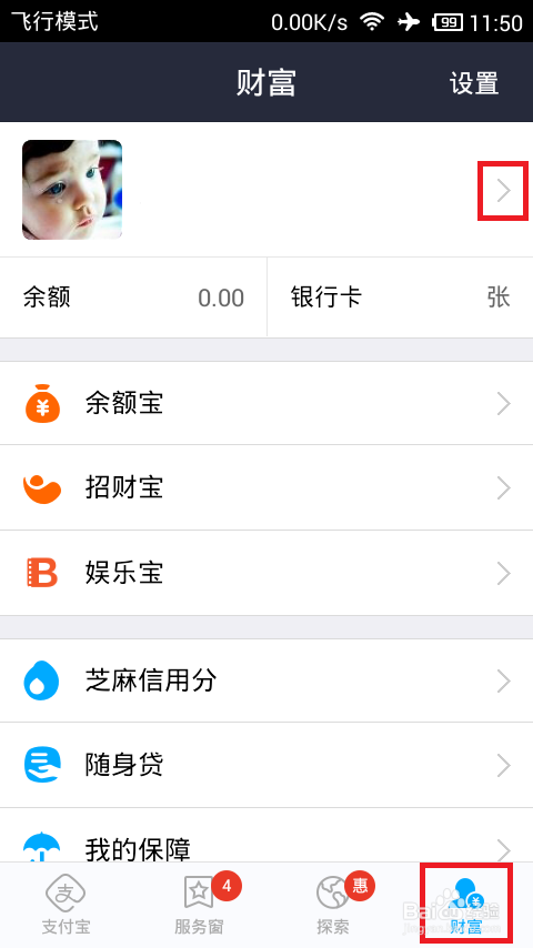 登录手机客户端后,点击“财富”选项卡,再点击头像右侧的箭头进入账户设置;