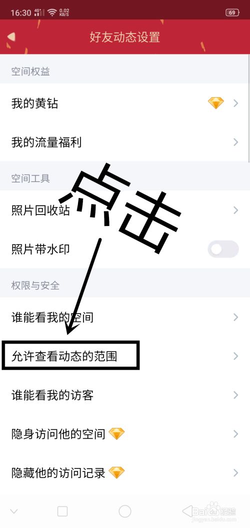 点击“好友动态权限设置”