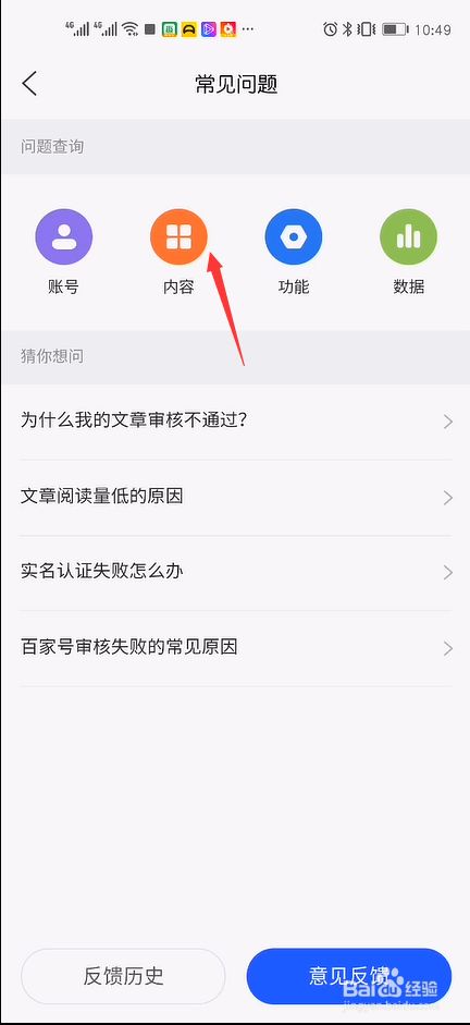 点击【问题查询】栏目下的“内容”选项。