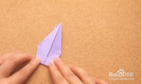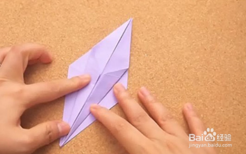 然后,把上半片的顶部尖端向上折到顶角,另一面也同样操作。