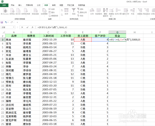 输入第二个参数 员工级别=A类,注意A类需要双引号(英文状态下)
