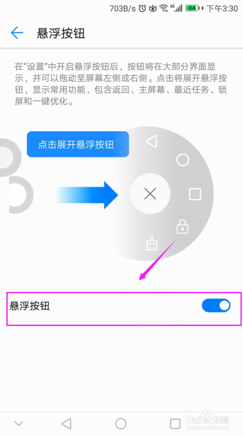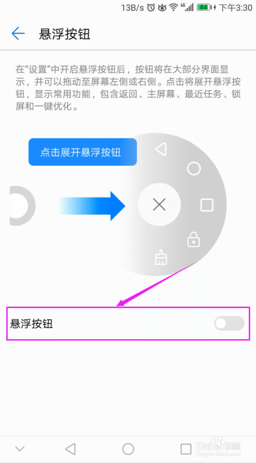 小编现在使用的手机就是华为手机,在华为手机这里,有个悬浮按钮,说实话,这个按钮还是不错的,当然了,小编一般很少用的,有的时候干脆关闭掉了它,我们来看下:怎么开启/关闭华为手机的悬浮按钮?