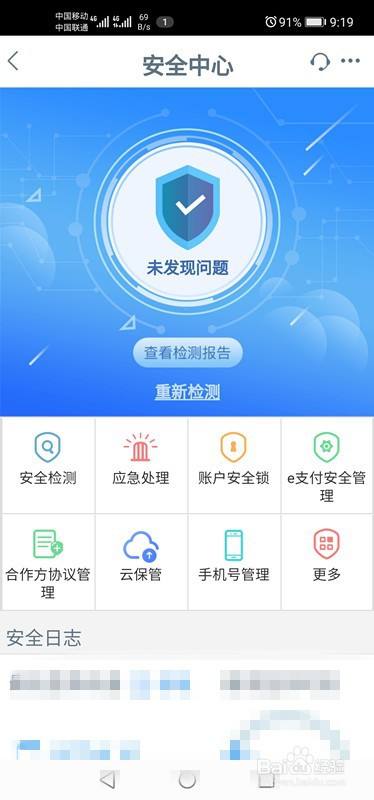 在进入安全中心后,会首先进行一次手机安全体检。完成后,在体检结果安全的前提下,点击下方的手机号管理。