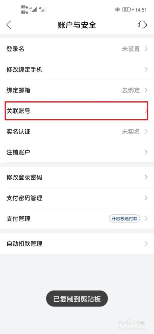 第五步点击进去,选择关联账号,如下图所示: