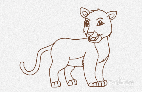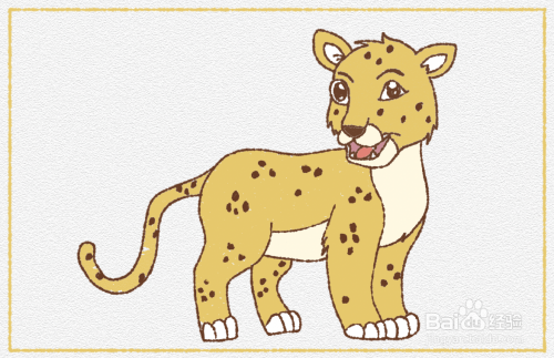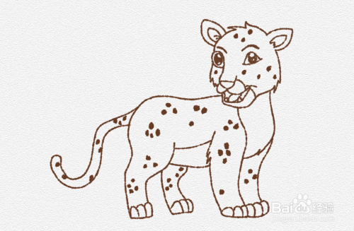 接着就是画出美洲豹的身体和四肢,还有屁股后边的尾巴。