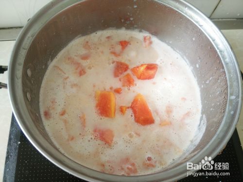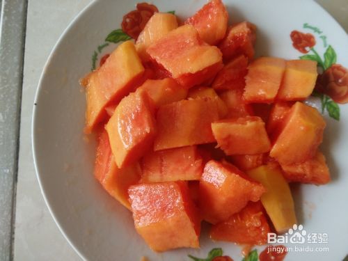 木瓜去皮去籽,然后切成小块。