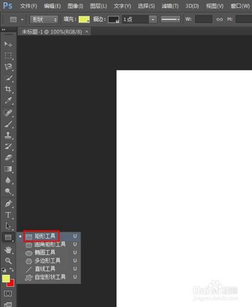 第二步:在左侧的工具栏中,选择“矩形工具”。