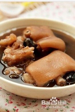 个人体会:猪蹄黑豆汤比猪蹄花生汤管事,个人亲自体验。