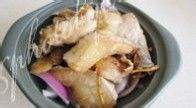 煎好的鱼腩放到洋葱上。