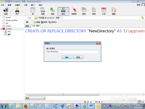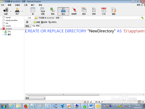 下面介绍如何使用Navicat创建oracle数据库目录的具体操作方法。