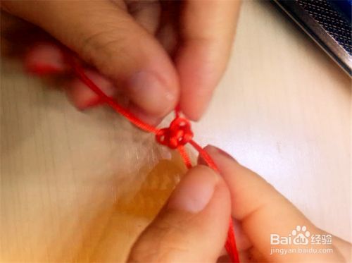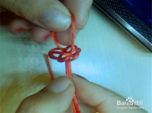 将线整理一下,两头慢慢拉紧,纽扣结就完成了