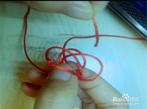 将另一根顺时针旋转如上步插入空隙中,稍微收紧