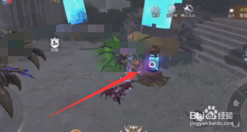 接着找到这个淡蓝色发光体靠近点击这个放大镜按钮即可。