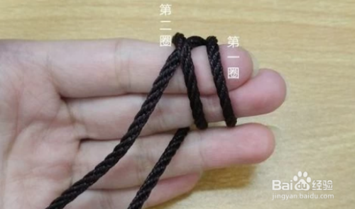 用线的一头在手上绕两圈,注意两圈的先后顺序及位置,第二圈是要压第一圈线的。