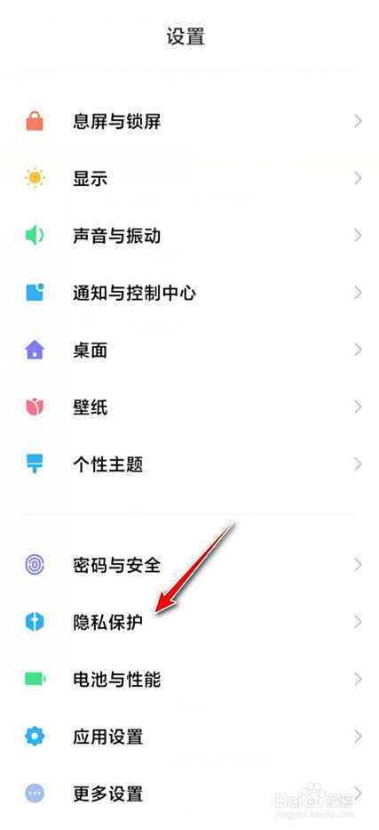 进入手机设置,进入隐私保护。