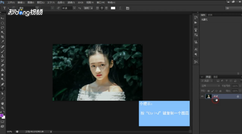 1打开Ps软件,点击文件、打开、导入素材文件。在键盘上按“ctrl+J”键复制一个图层。