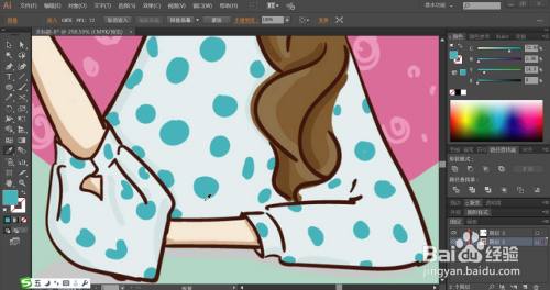 女孩的上衣使用天蓝色填充,上面的圆点图案使用纯蓝色填充,桌子使用蓝灰色填充。