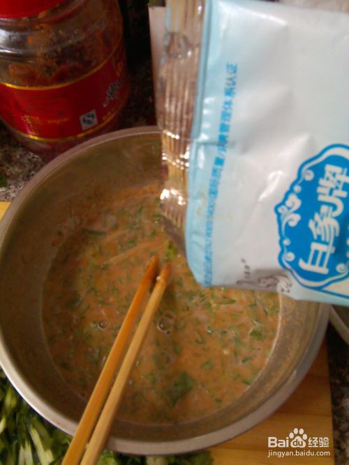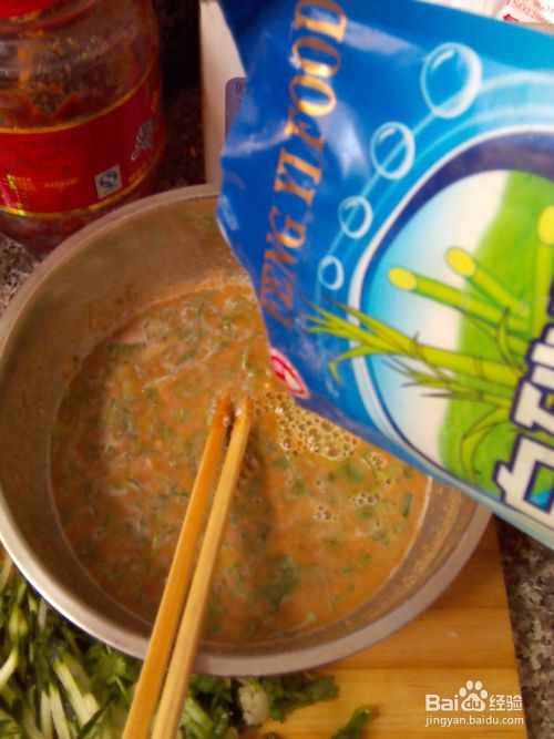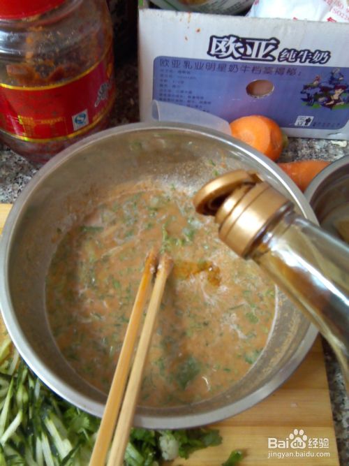 把调好的汁倒入米粉中。再放入点辣椒油。搅拌均匀即可。
