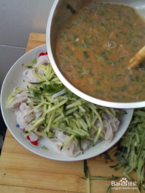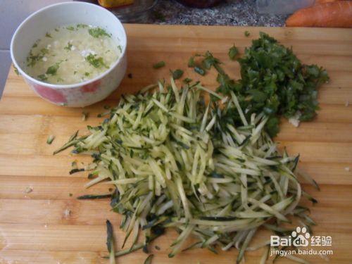 把黄瓜切丝。香菜切末,蒜拍末,把蒜放入碗中,放入少量的水。