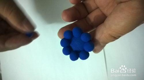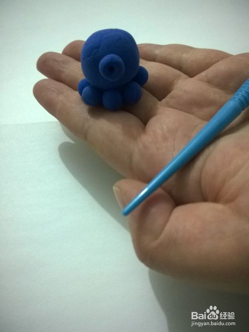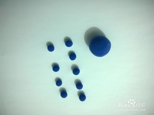 首先选用蓝色粘土团一个大圆球作为章鱼先森的身体,再团8个小球球作为章鱼先森的触角。
