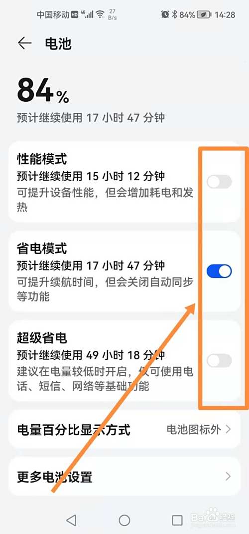 了解了每种模式的省电性能后,可在必要时根据个人手机电量剩余量设置相应模式,以达到省电目的。