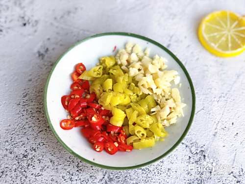 小米辣切成小细丁;剁椒切成细丁;再准备一点蒜泥。