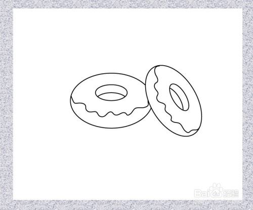 在小椭圆形里画一条弧线,作为甜甜圈的厚度。这样一个甜甜圈就画好了。