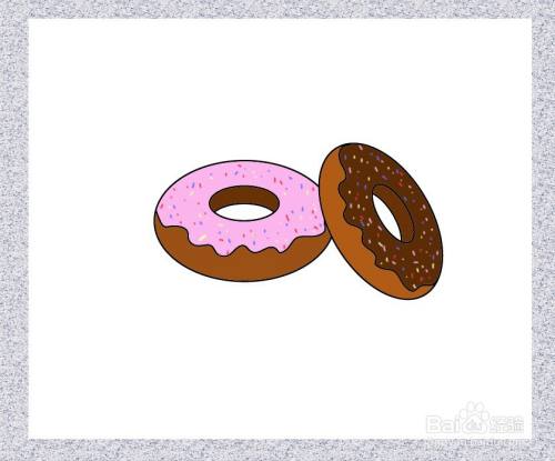 给甜甜圈涂上颜色,加入五颜六色的糖霜,这样美味的甜甜圈就画好了。