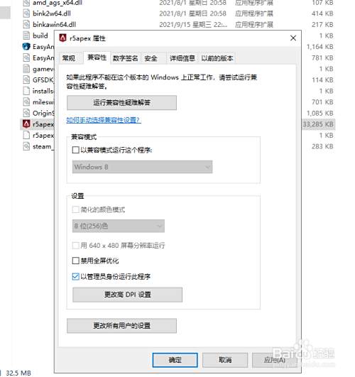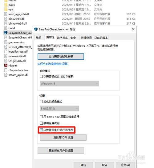 将r5apex程序也勾选管理员身份运行此程序。
