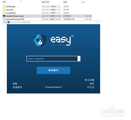 打开EasyAntiCheat_Setup,然后修复服务即可。