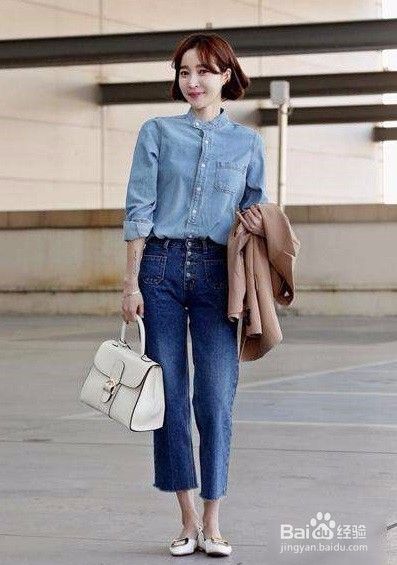 这套搭配是非常清新自然的,白色短款时尚、大方又洋气,搭配一件帅气的长袖牛仔衬衫,简约大方又时尚。