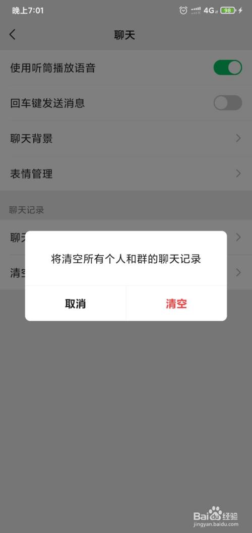 点击聊天记录备份与迁移下面的清空聊天记录。