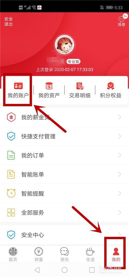 在【我的】页面下,点击【我的帐户】。