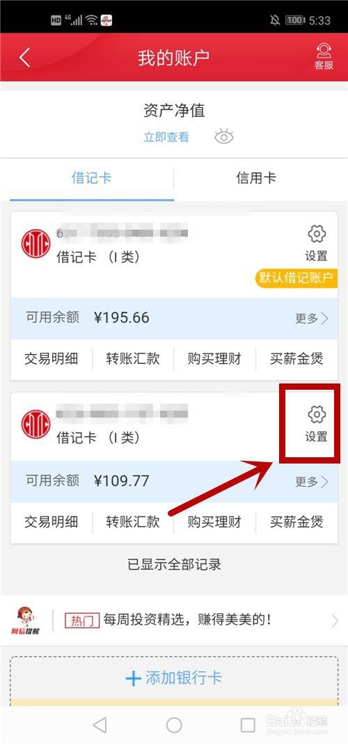 选择一个帐户,点击【设置】。