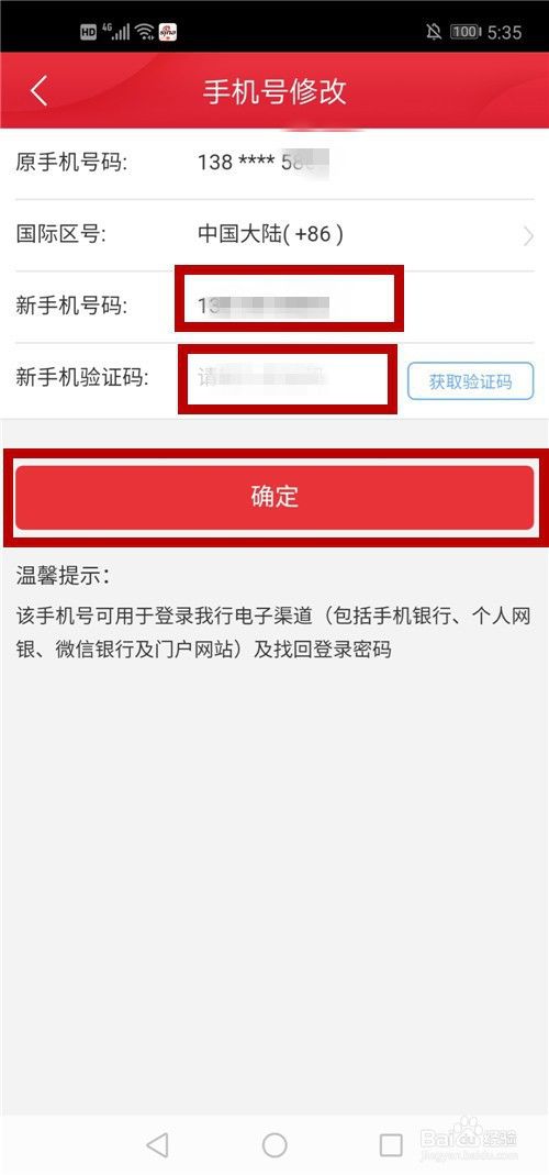 点击【获取验证码】,输入新手机号和验证码,点击【确定】,手机便更改成功了!