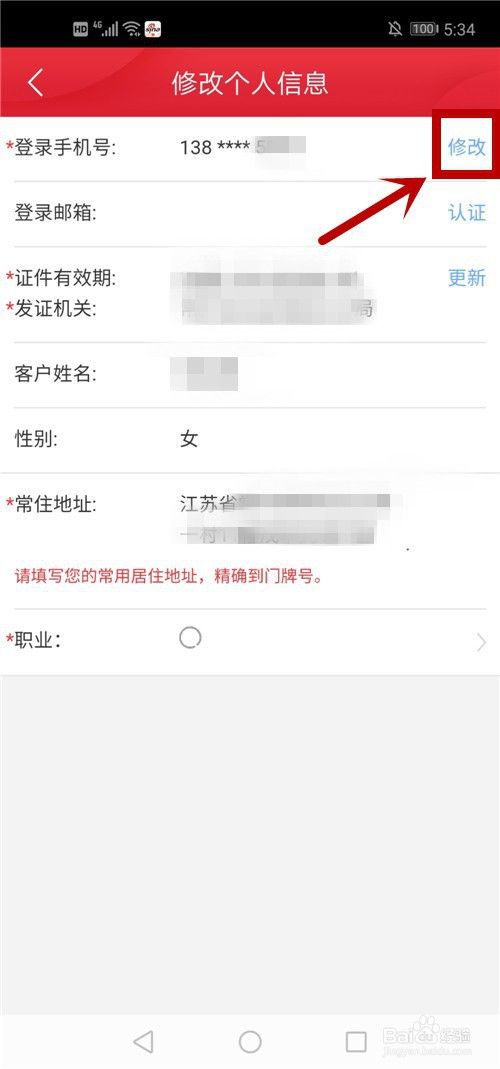 7、在【修改个人信息】,在手机号处,点击【修改】。