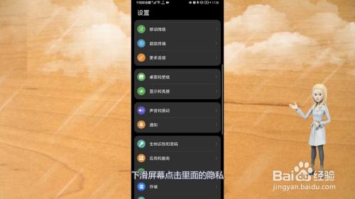 在华为手机设置界面中,下滑屏幕点击里面的隐私。