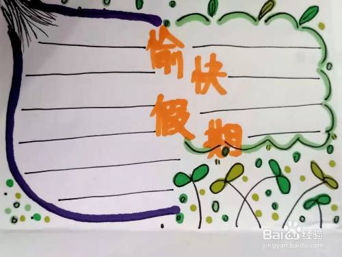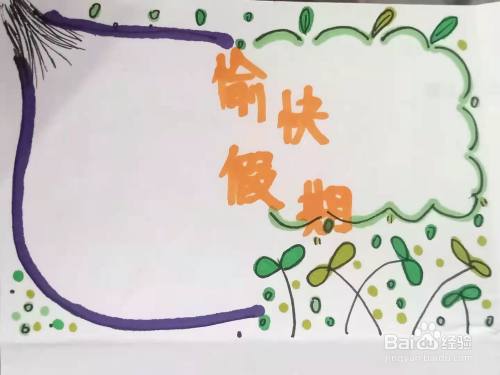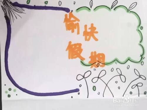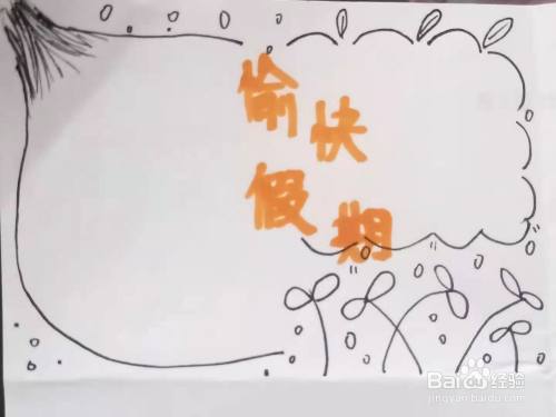 5. 接着,在手抄报上写出大标题“愉快假期”。