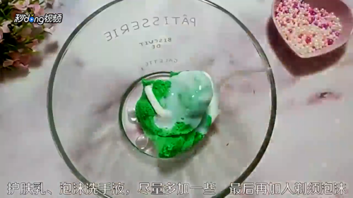 2倒一点纯甘油,用手揉搓黏土,让黏土手感变得柔软。