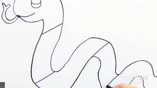 先用黑色的笔勾勒出一个蛇的轮廓形状像长条一样。