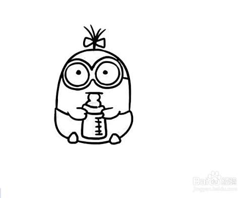 小黄人的形象有很多种,下面我们画一个喝奶瓶儿的小黄人,